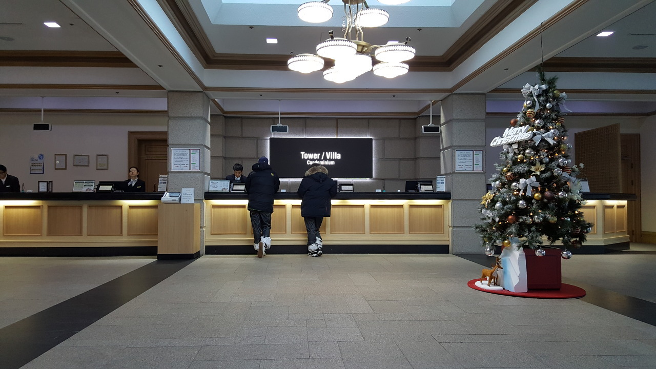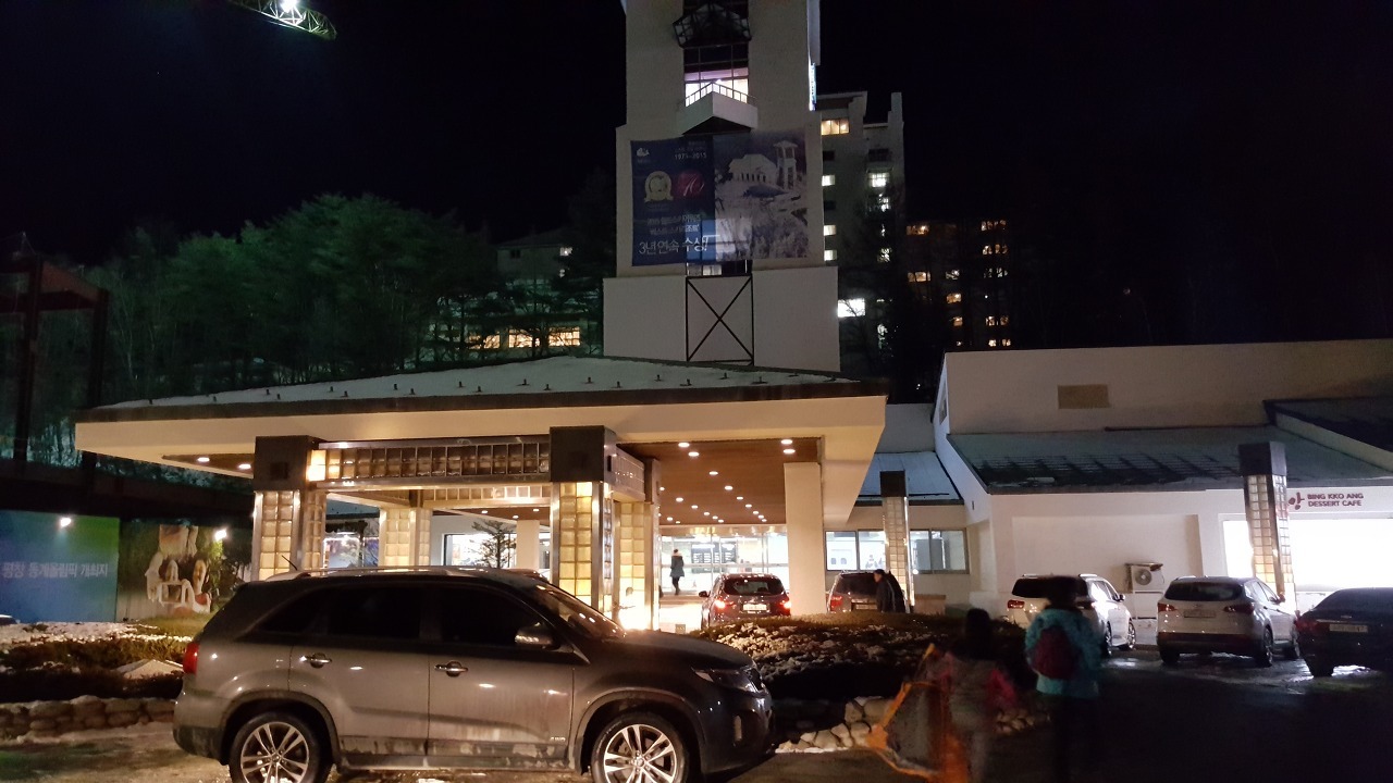 금요일 저녁에 출발하여 약 3시간 만에 용평리조트에 도착했습니다. 체크인은 타워콘도 2층 프런트에서 진행했으며, 타워콘도에는 편의점, 음식점, 노래방, 볼링장 등 다양한 편의시설이 모여 있어 편리했습니다.